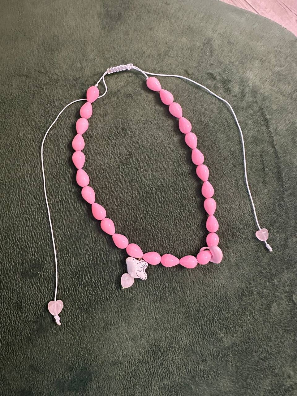Чокер регулируемый с розовыми каплями, сердцем , керамической голубкой и розовыми кварцевыми сердечками